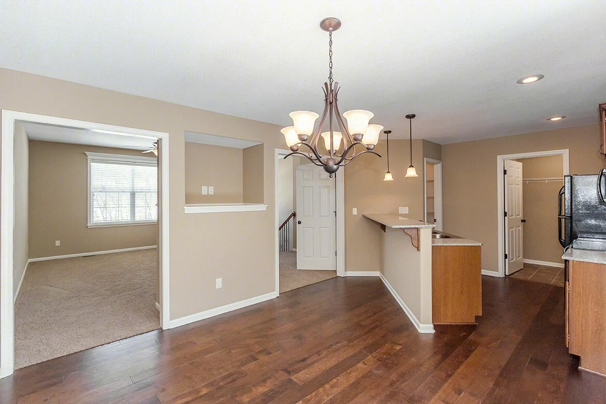 This is our Split Entry floorplan with three bedrooms, two bathrooms, and 1,408 square feet of living space. Please call a member of our friendly leasing staff for more information!